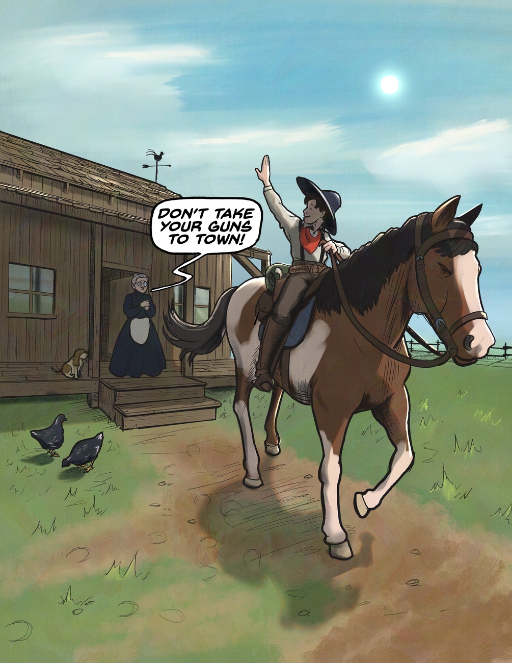 A western gunslinger comic based on the Johnny Cash song Don’t Take Your Guns to Town.